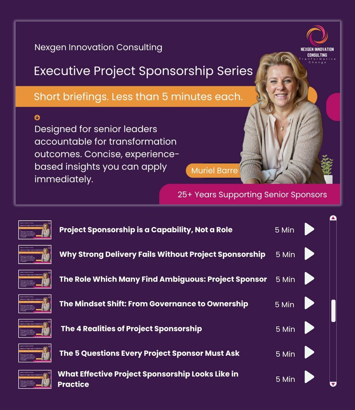 Across sectors, I have observed a consistent pattern. Transformation rarely slows because of delivery discipline. It slows when project sponsorship clarity is weak. That insight led to the Executive Project Sponsorship Series an on-demand resource for project sponsors navigating complexity. Each episode is under five minutes. Focused. Practical. Immediately applicable. Why this series? Over the years, I have seen capable organisations struggle not because of delivery discipline, but because...